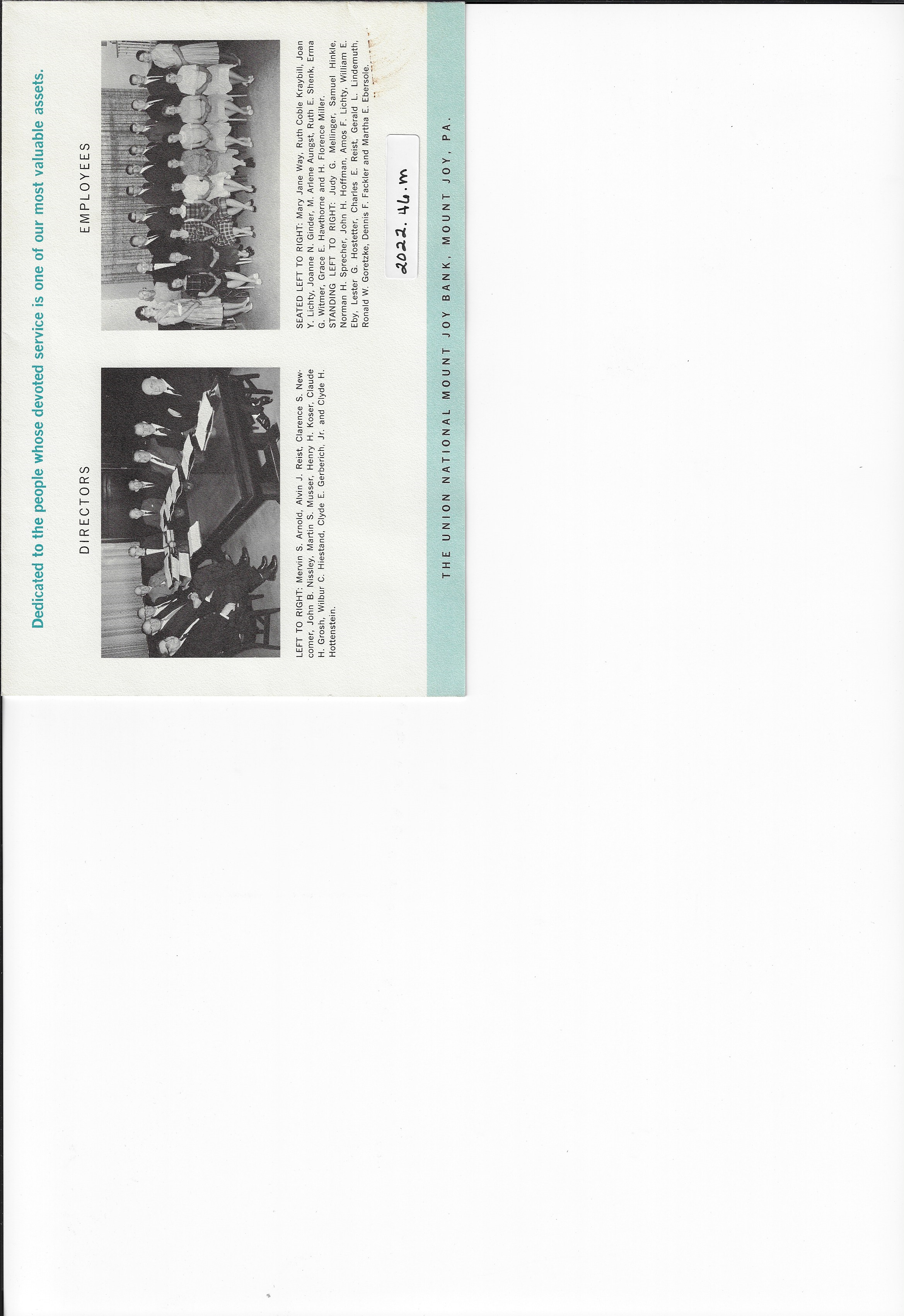 “Union National Mount Joy Bank, directors and employees,” MJAHS Online Inventory, accessed October 14, 2025, https://www.mountjoyhistory.com/inventory/items/show/11914.