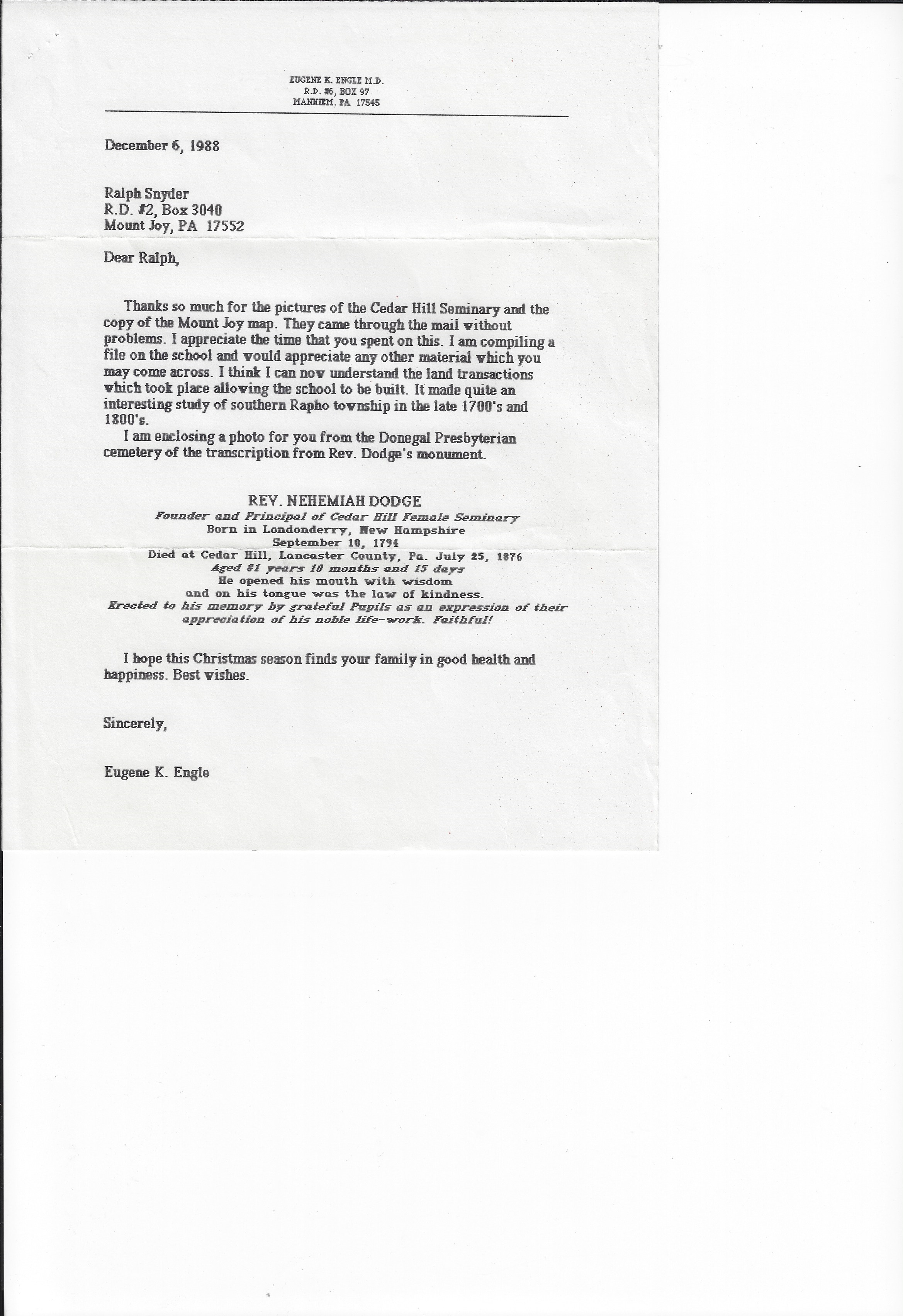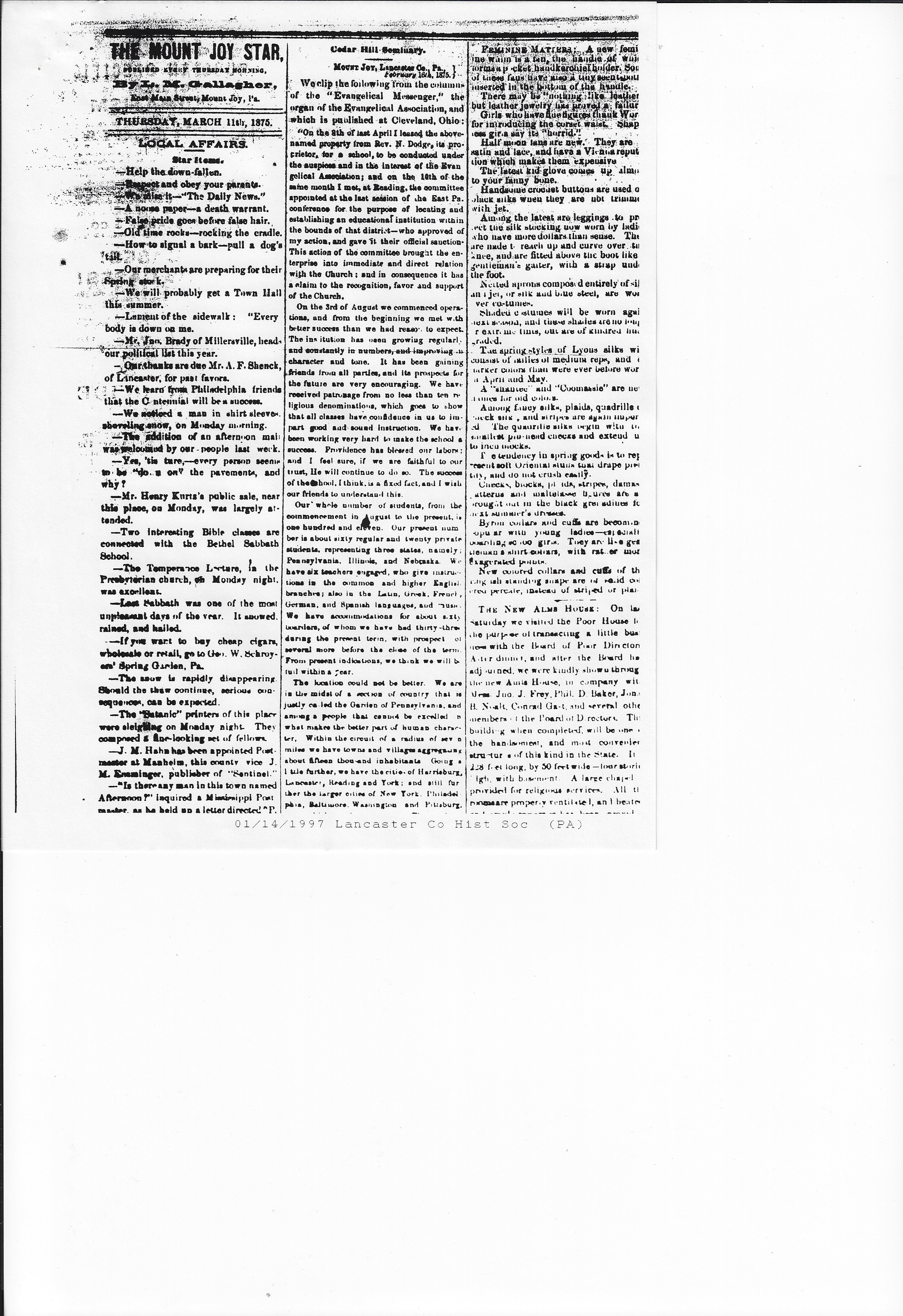 “History of Cedar Hill and Rev. Nehemiah Dodge,” MJAHS Online Inventory, accessed October 15, 2025, https://www.mountjoyhistory.com/inventory/items/show/11921.