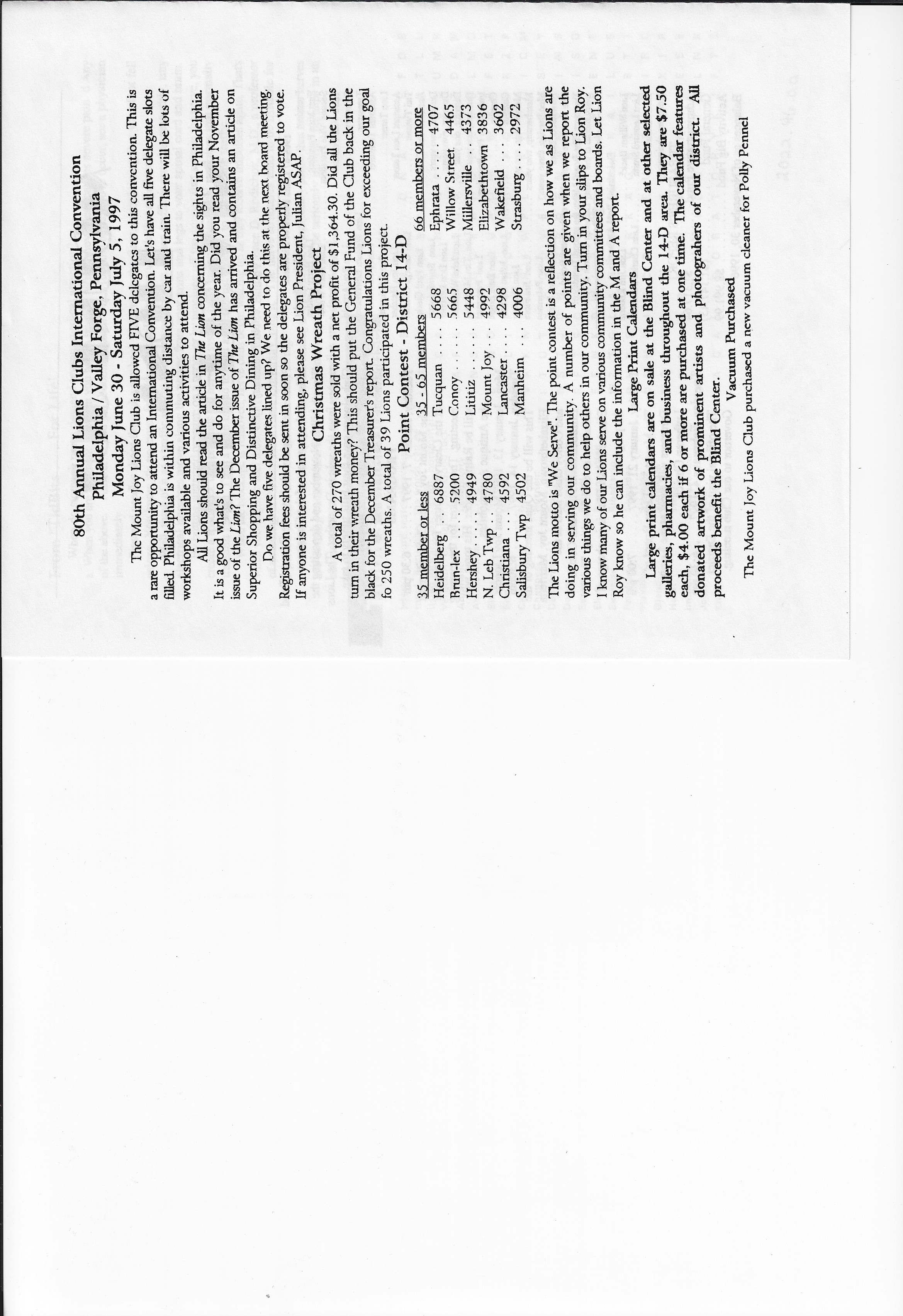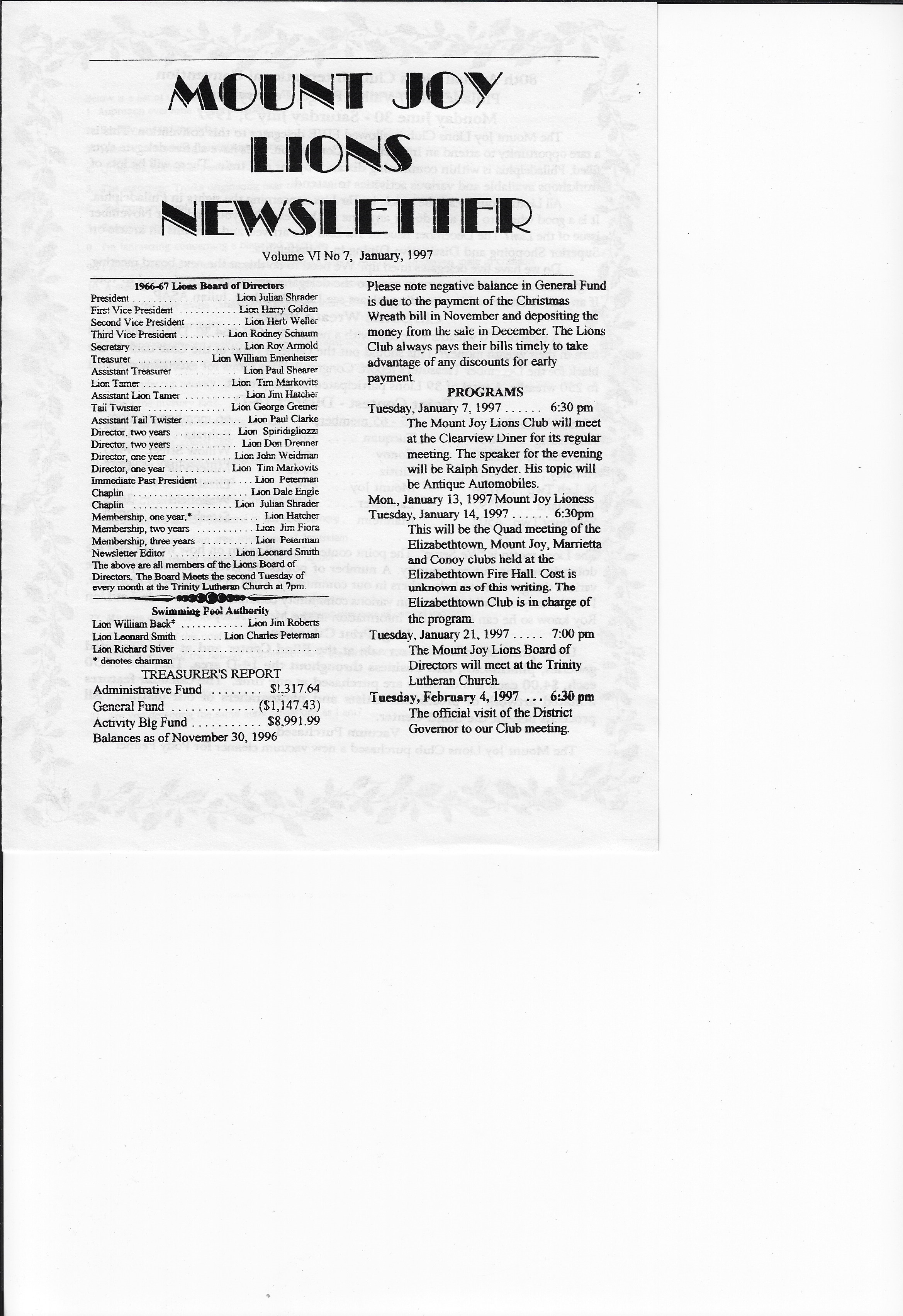 Mount Joy Lions Club newsletter, 1997