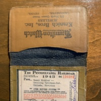 PA R. R. pass issued 1943 to Harry Eichler, crossing watchman, in leather case