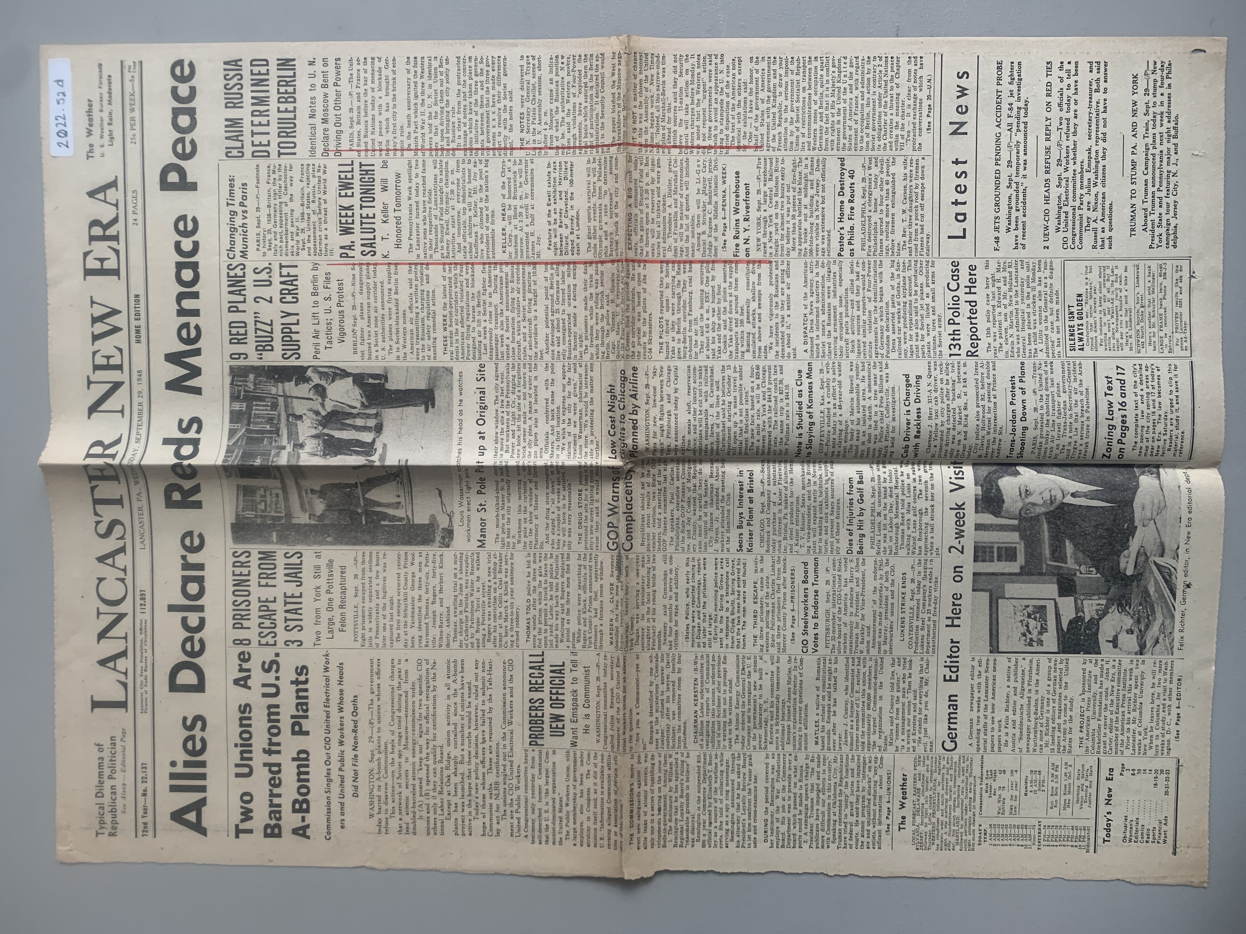 Lancaster New Era, “KT Keller day, September 29, 1948, news article,” MJAHS Online Inventory, accessed October 16, 2025, https://www.mountjoyhistory.com/inventory/items/show/11996.