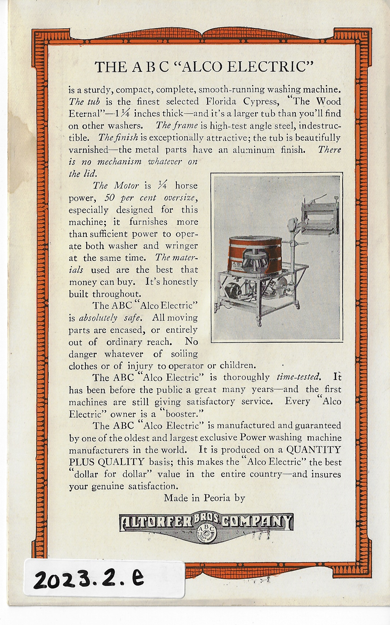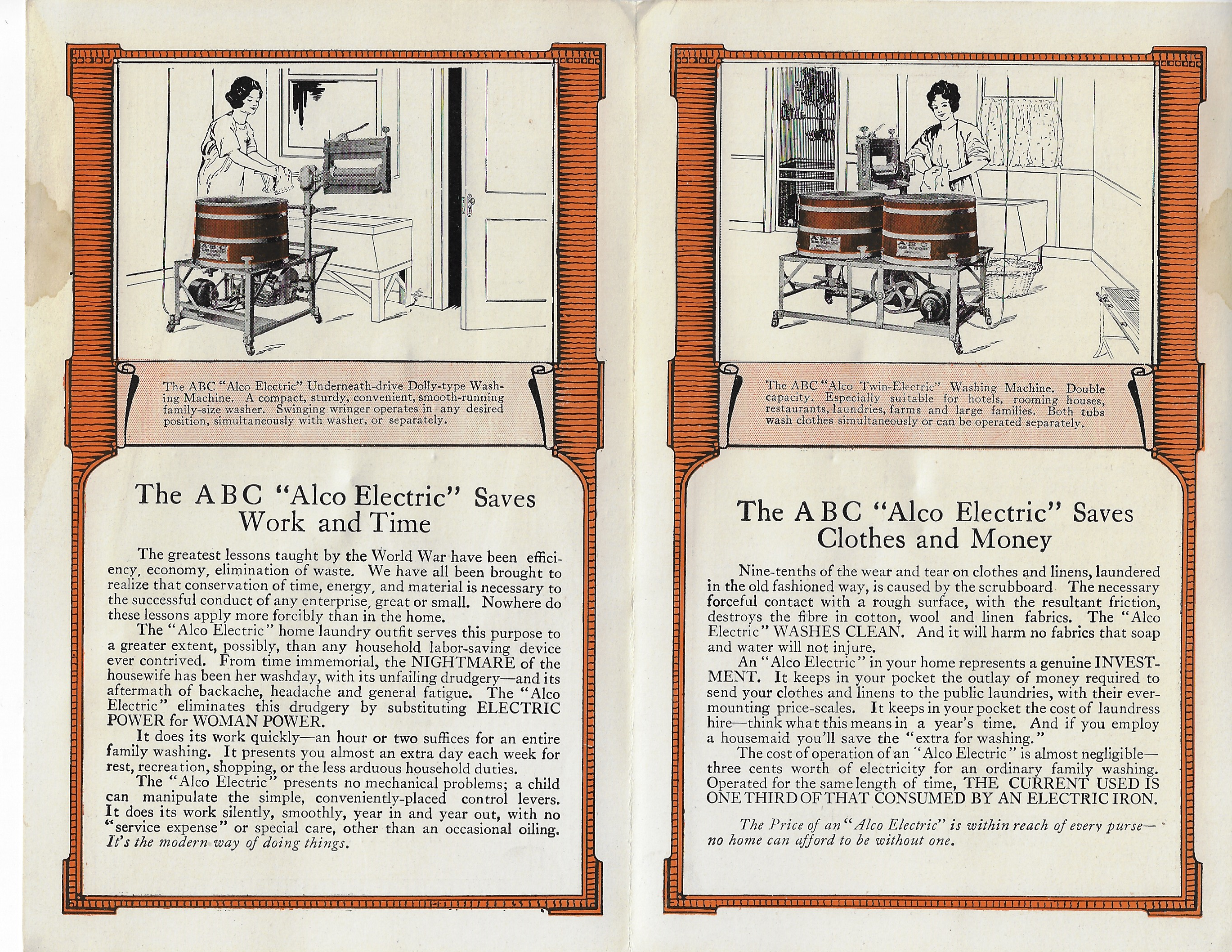 “Brown Bros. The ABC's of Alco Electric Washing Machines,” MJAHS Online Inventory, accessed October 14, 2025, https://www.mountjoyhistory.com/inventory/items/show/12038.