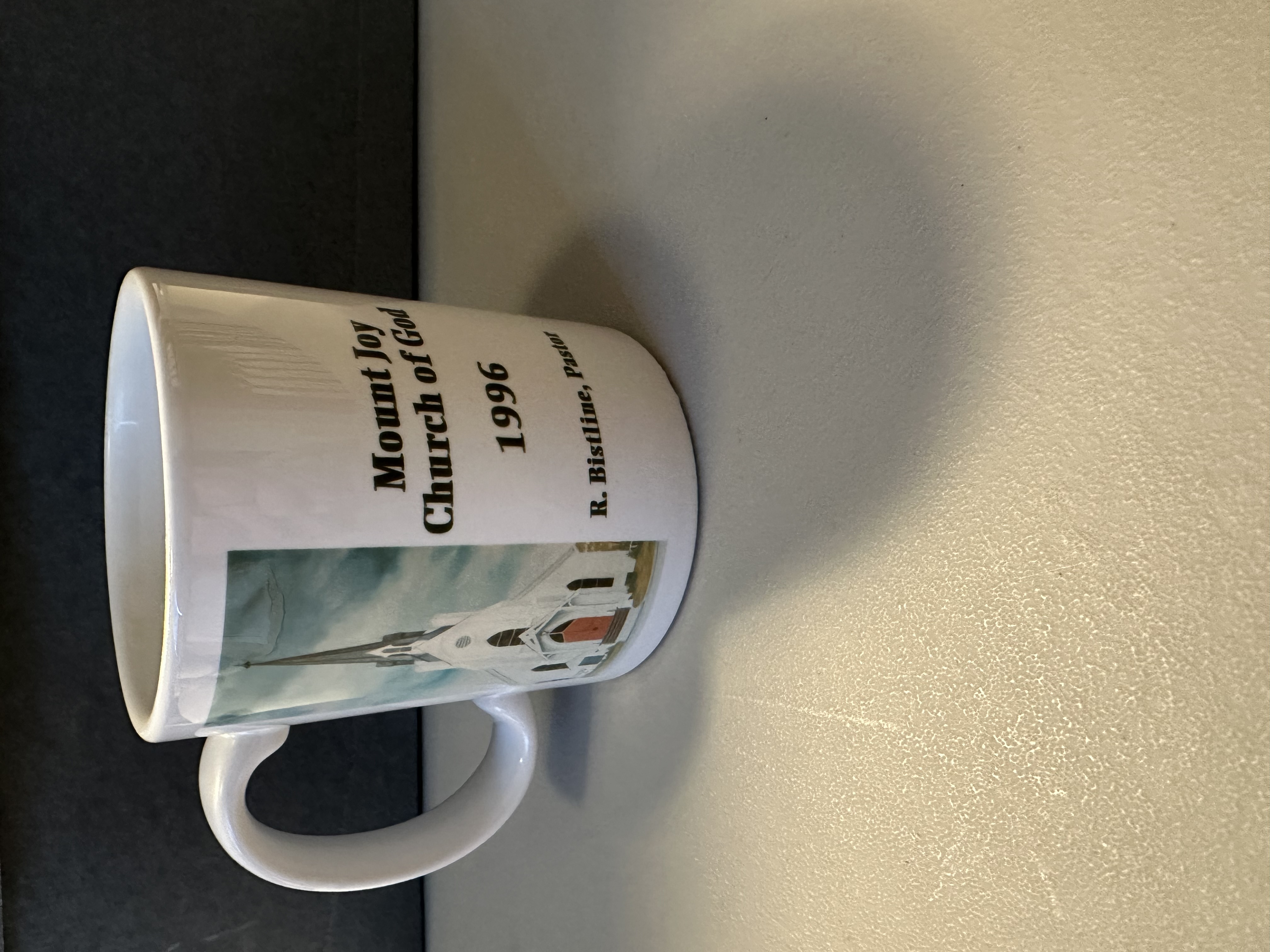 “Mount Joy Church of God, R. Bistline, Pastor, 1996 mug,” MJAHS Online Inventory, accessed October 15, 2025, https://www.mountjoyhistory.com/inventory/items/show/12056.