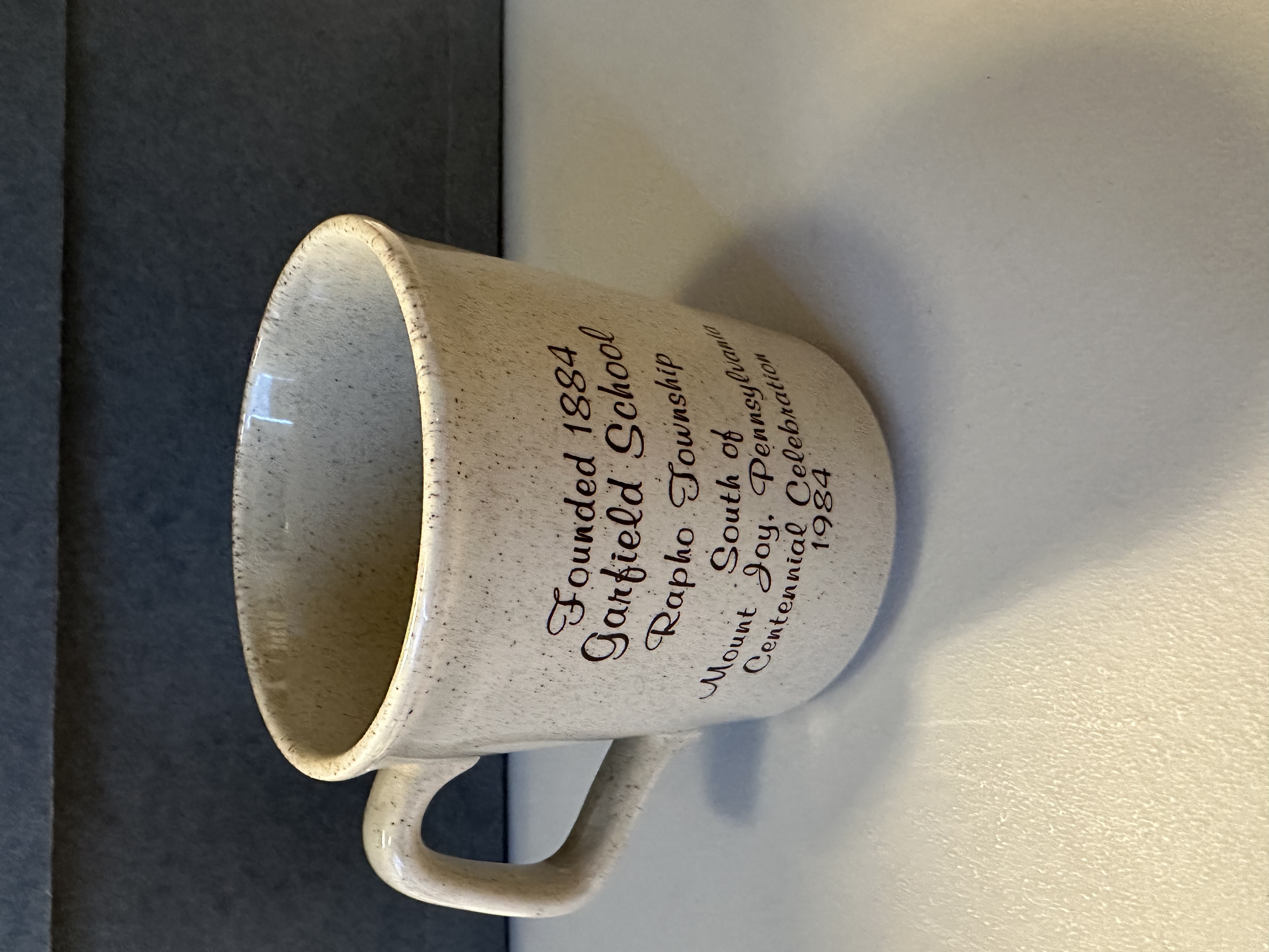 “Garfield School, Rapho Township, 100 years 1884-1984 Ceramic Mug,” MJAHS Online Inventory, accessed October 16, 2025, https://www.mountjoyhistory.com/inventory/items/show/12058.