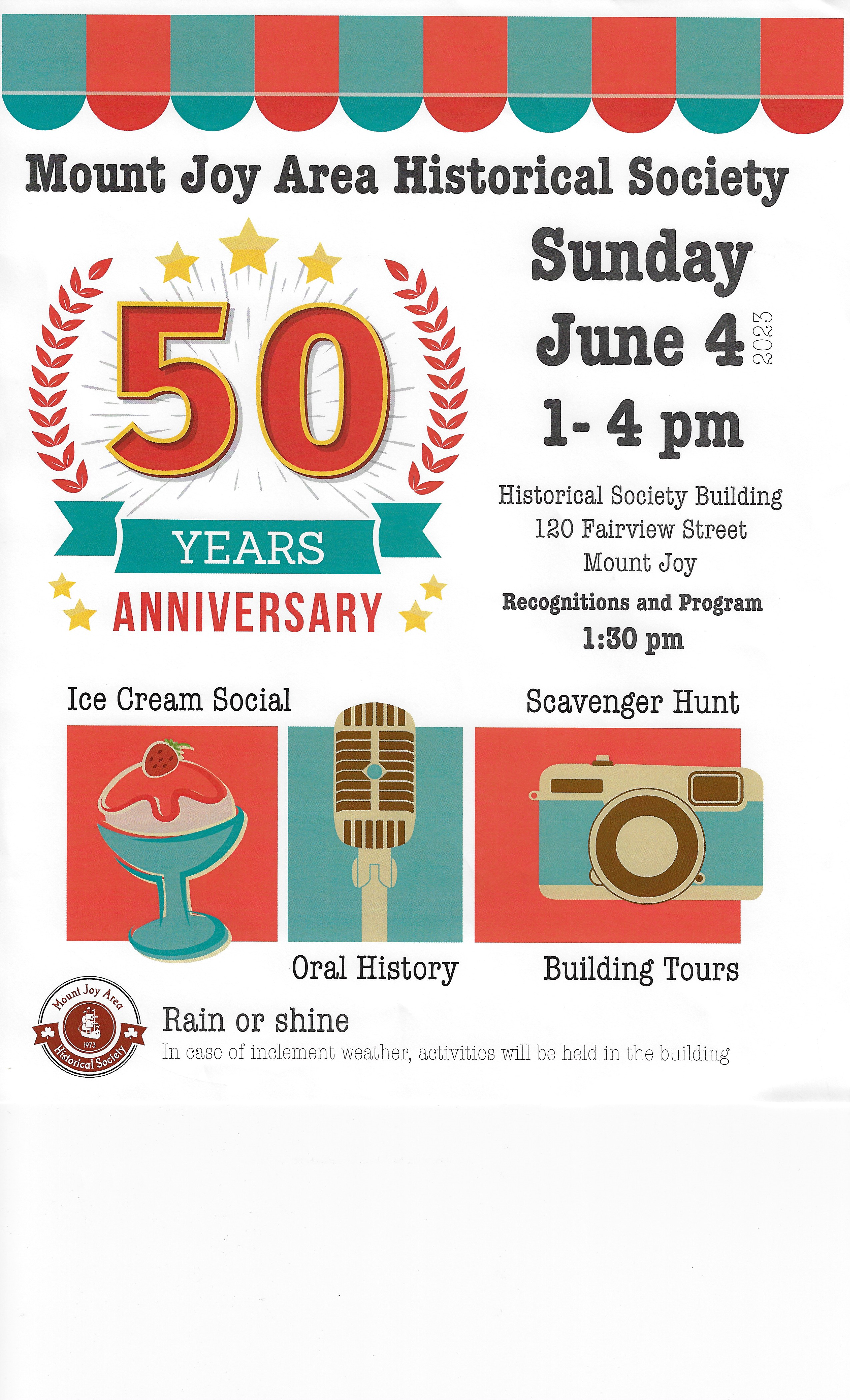 “MJAHS 50th Anniversary Poster, June 4, 2023,” MJAHS Online Inventory, accessed October 17, 2025, https://www.mountjoyhistory.com/inventory/items/show/12096.