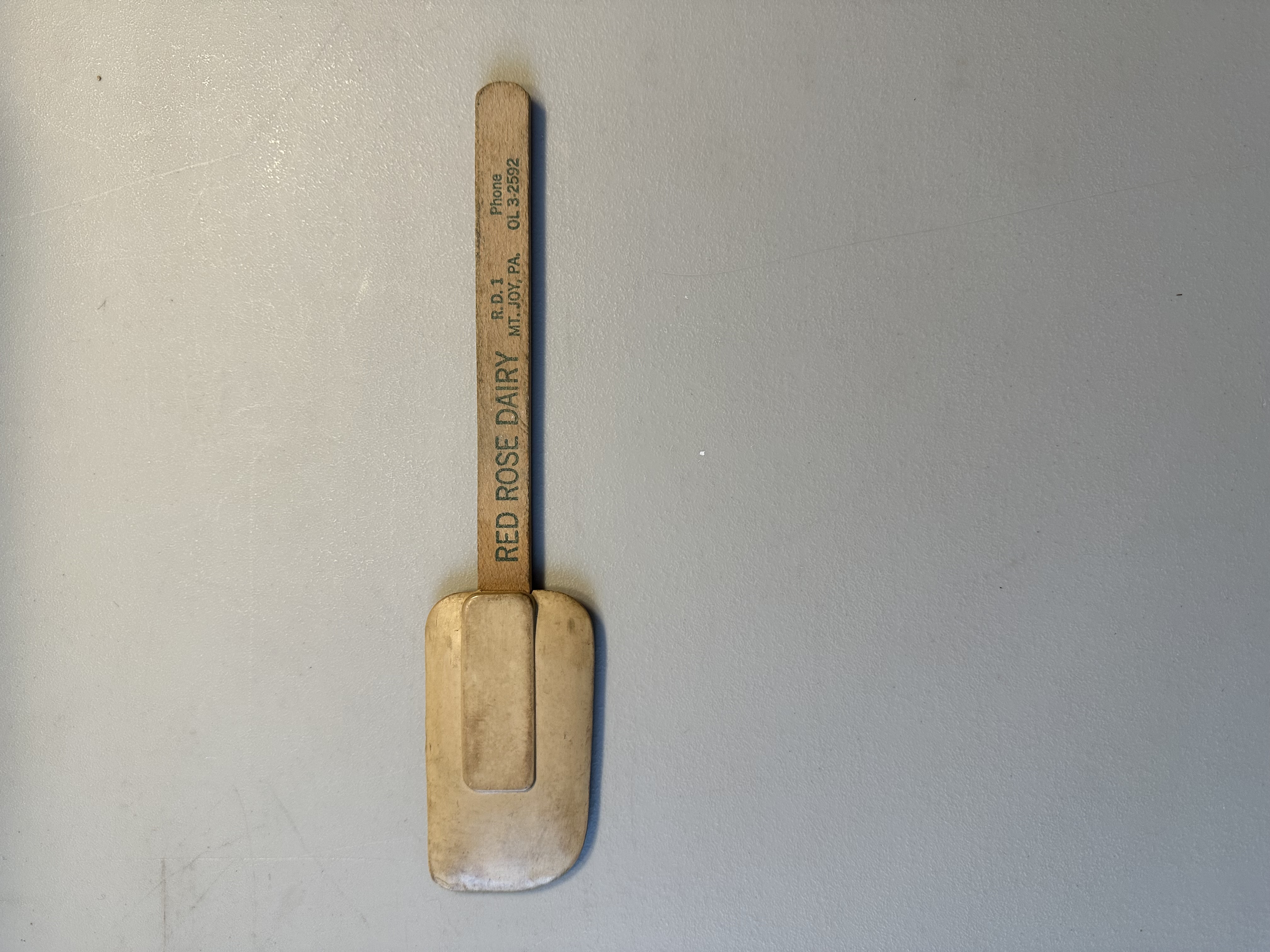 “Red Rose Dairy spatula,” MJAHS Online Inventory, accessed November 30, 2025, https://www.mountjoyhistory.com/inventory/items/show/12121.