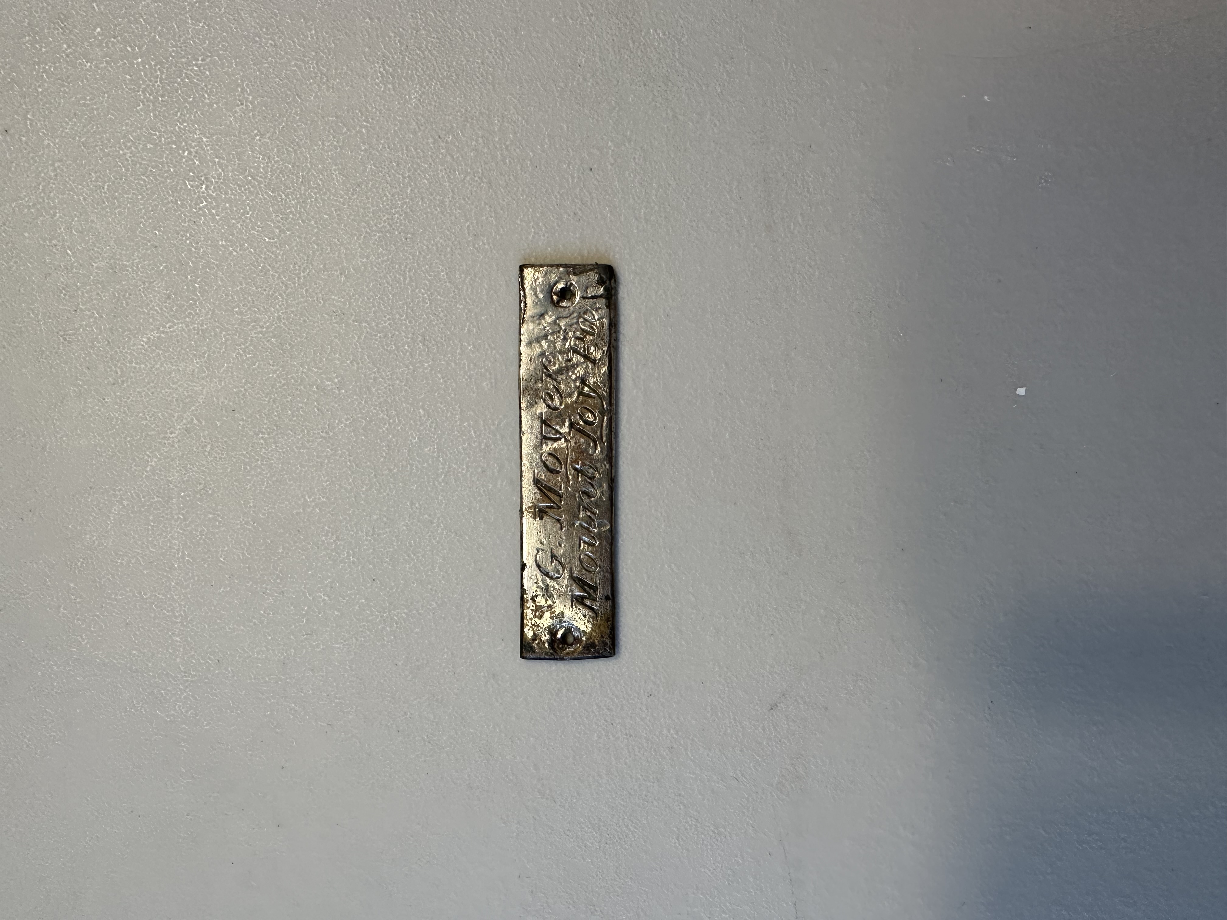 “G Moyer, Mount Joy, Pa Metal Tag,” MJAHS Online Inventory, accessed October 15, 2025, https://www.mountjoyhistory.com/inventory/items/show/12123.