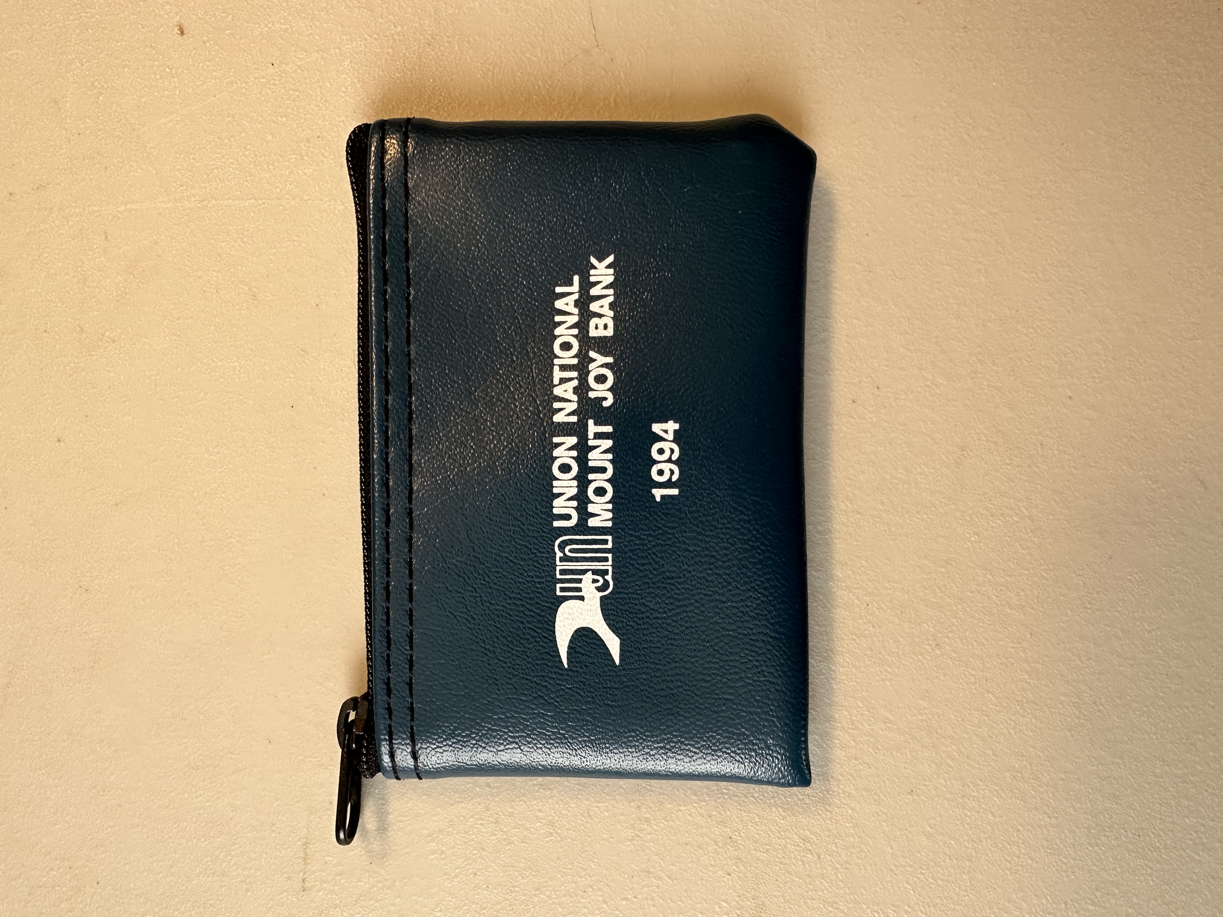 “Union National Mount Joy Bank blue coin purse, 1994,” MJAHS Online Inventory, accessed October 15, 2025, https://www.mountjoyhistory.com/inventory/items/show/12128.