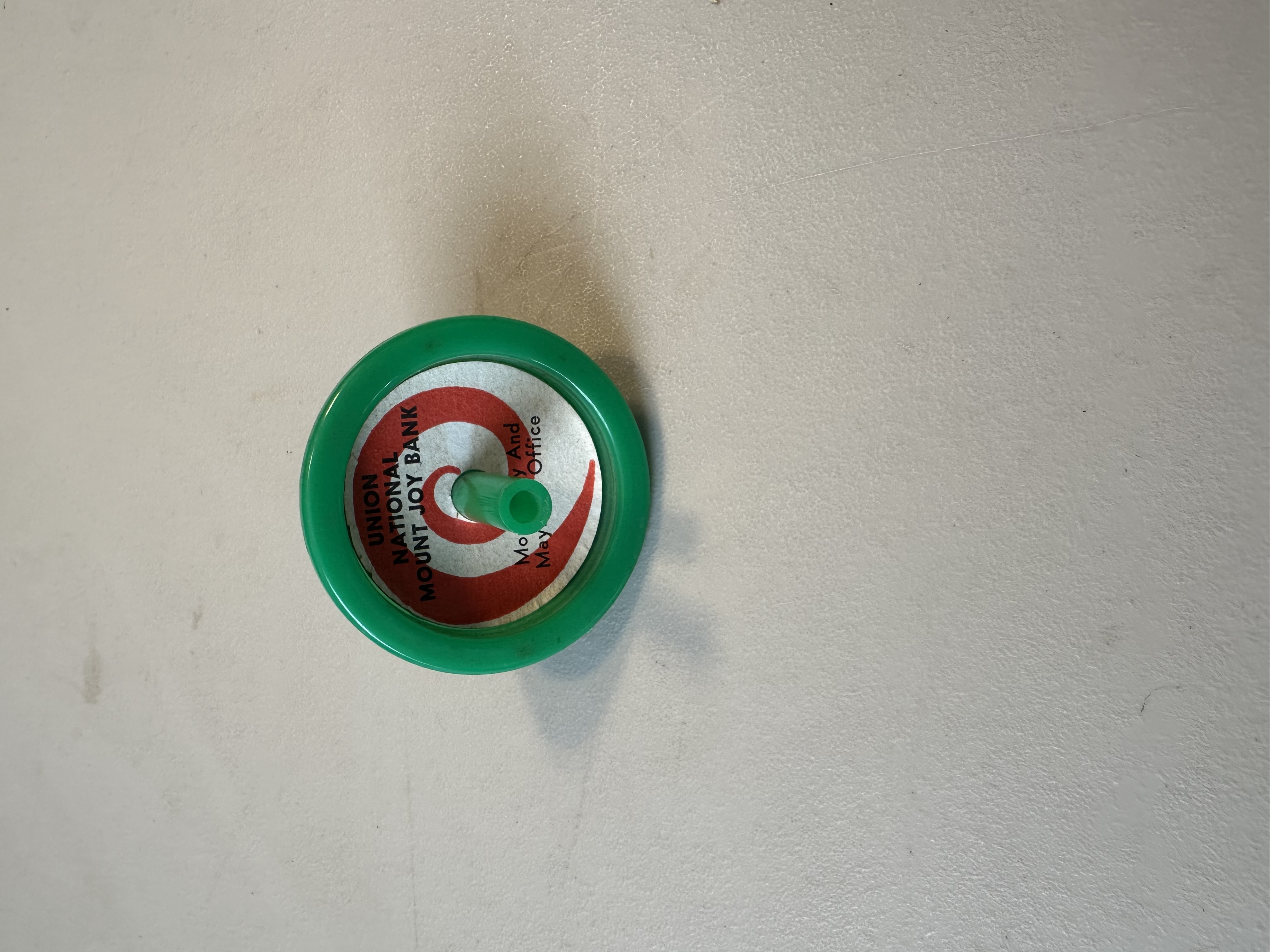 Union National Mount Joy Bank spinning top, green, Mount Joy and Maytown offices