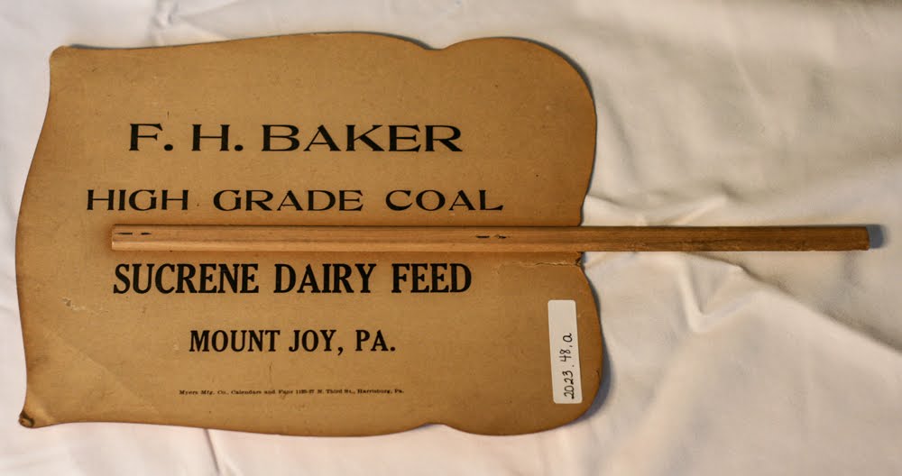 Myers Mfg. Co., Calendars and Fans 1125-27 N. Third St., Harrisburg, PA, “F. H. Baker hand fan,” MJAHS Online Inventory, accessed October 14, 2025, https://www.mountjoyhistory.com/inventory/items/show/12259.