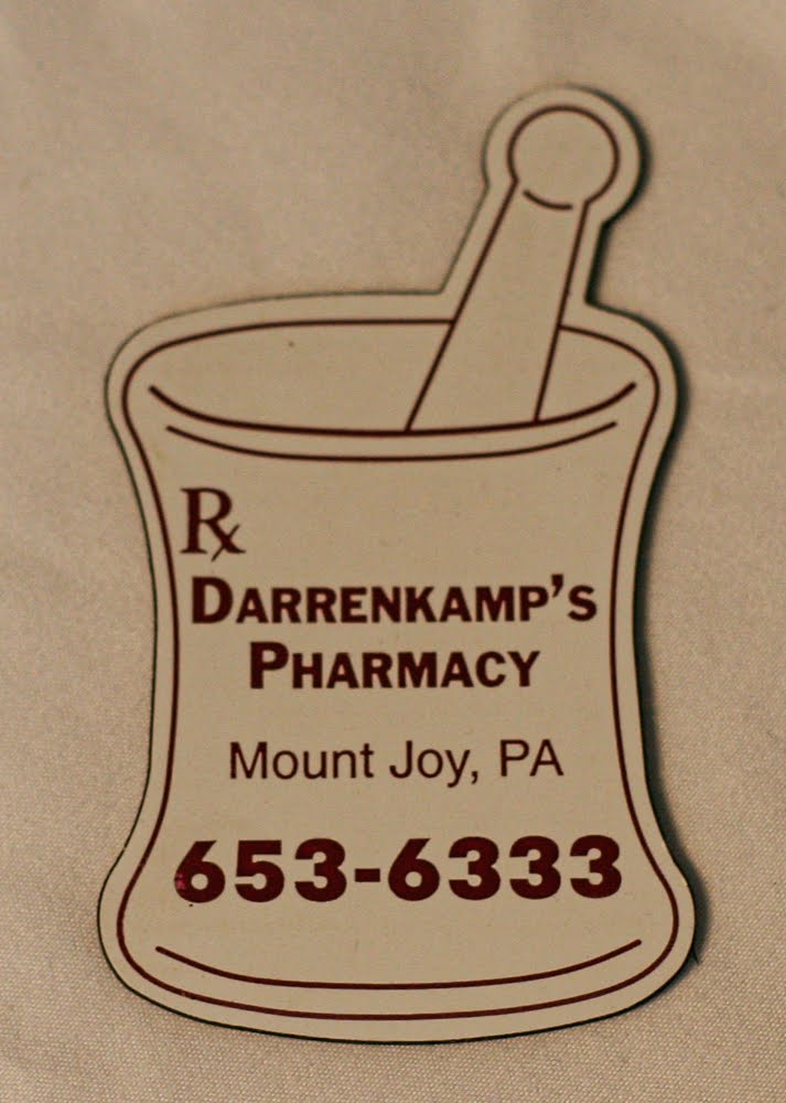 “Darrenkamp's Pharmacy magnet,” MJAHS Online Inventory, accessed October 14, 2025, https://www.mountjoyhistory.com/inventory/items/show/12279.