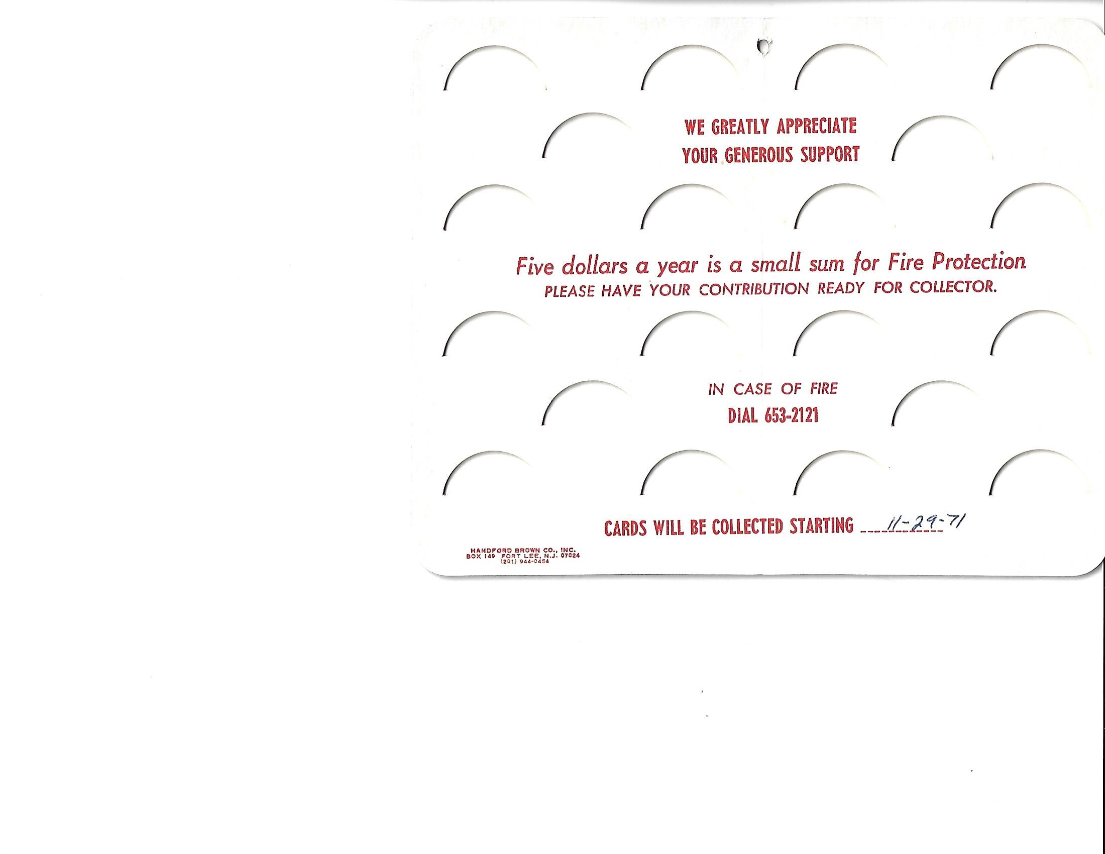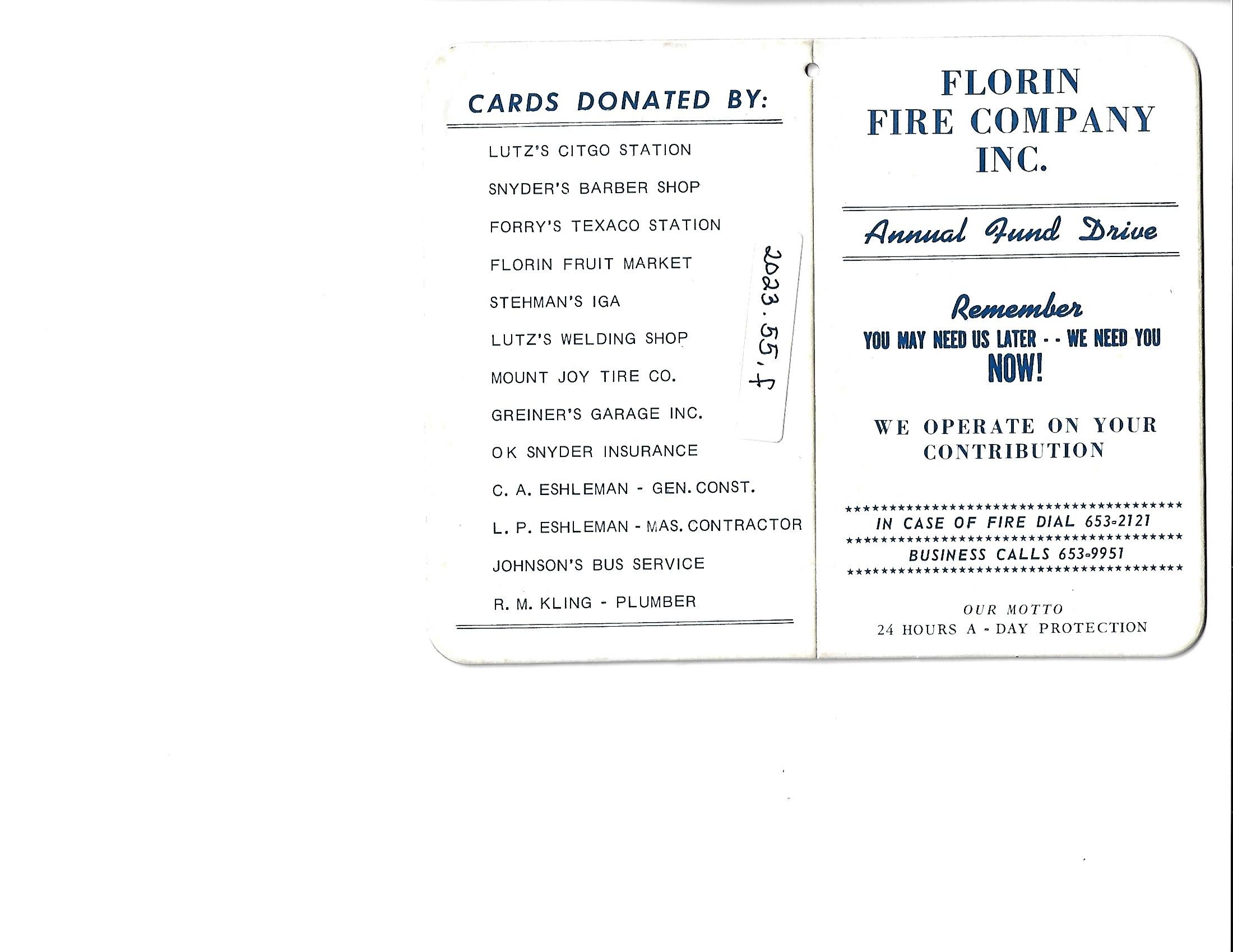 Florin Fire Company, Inc. Annual fund drive card
