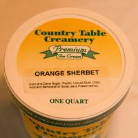 Country Table Creamery 1 qt. ice cream tub, orange sherbet, 2017