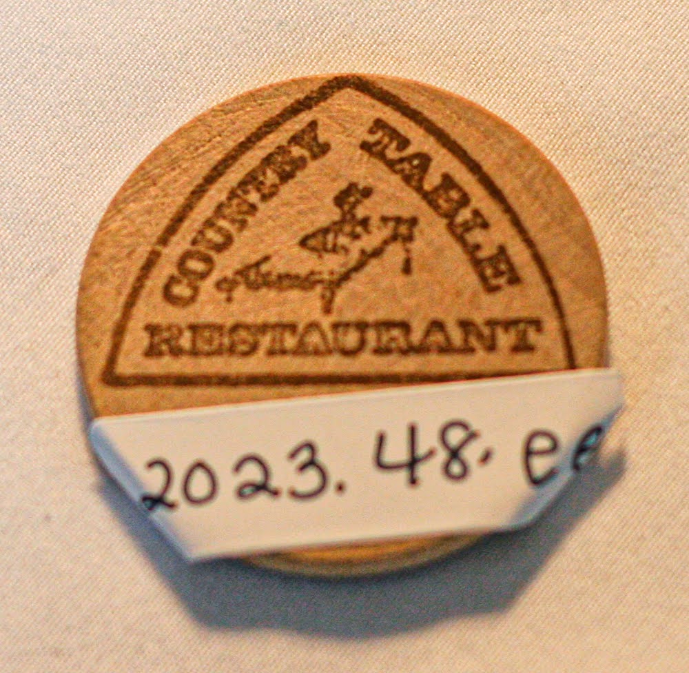 “Country Table Restaurant 50 cent wooden nickel,” MJAHS Online Inventory, accessed October 14, 2025, https://www.mountjoyhistory.com/inventory/items/show/12336.