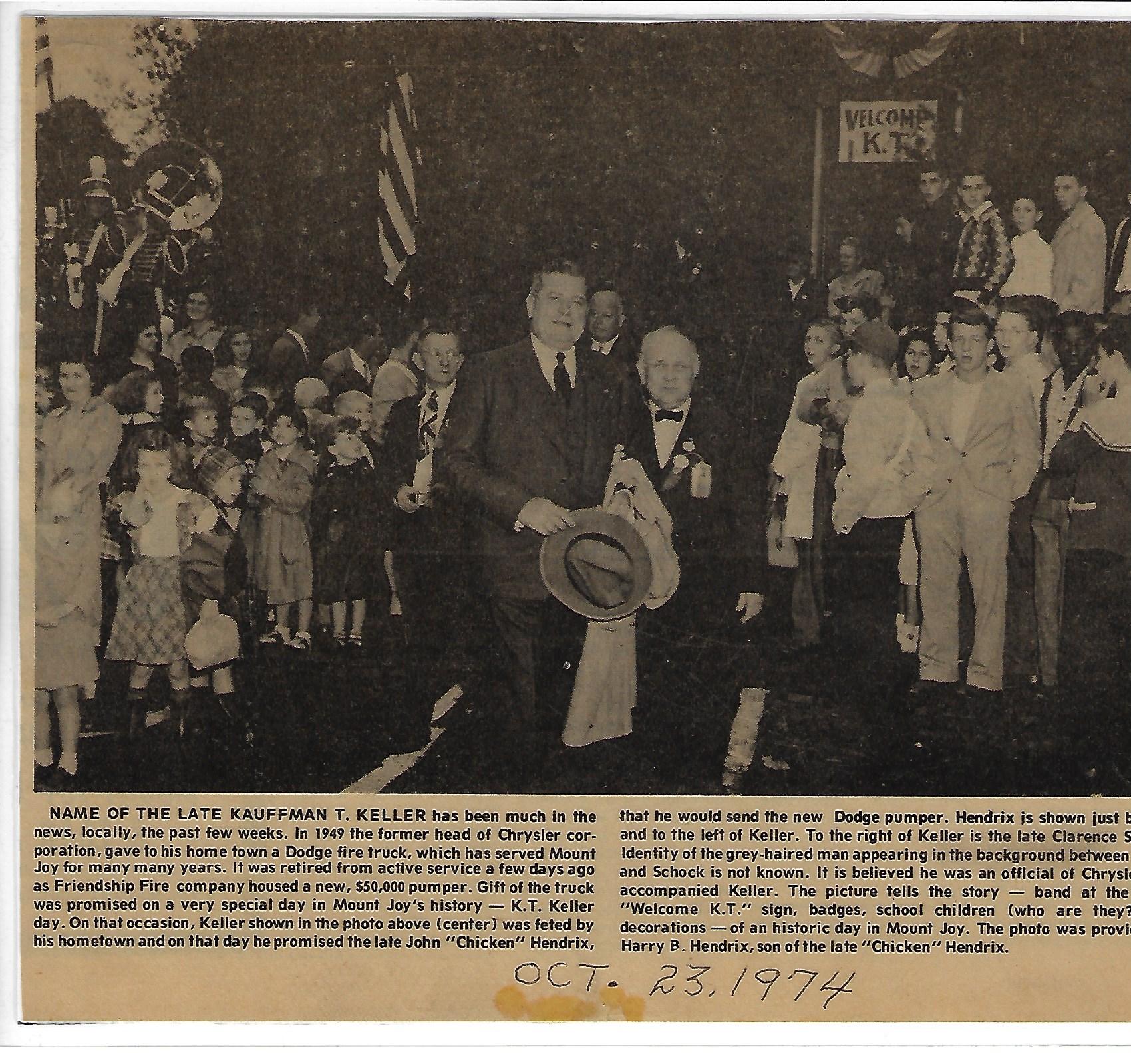 K. T. Keller article and photo, October 23, 1974