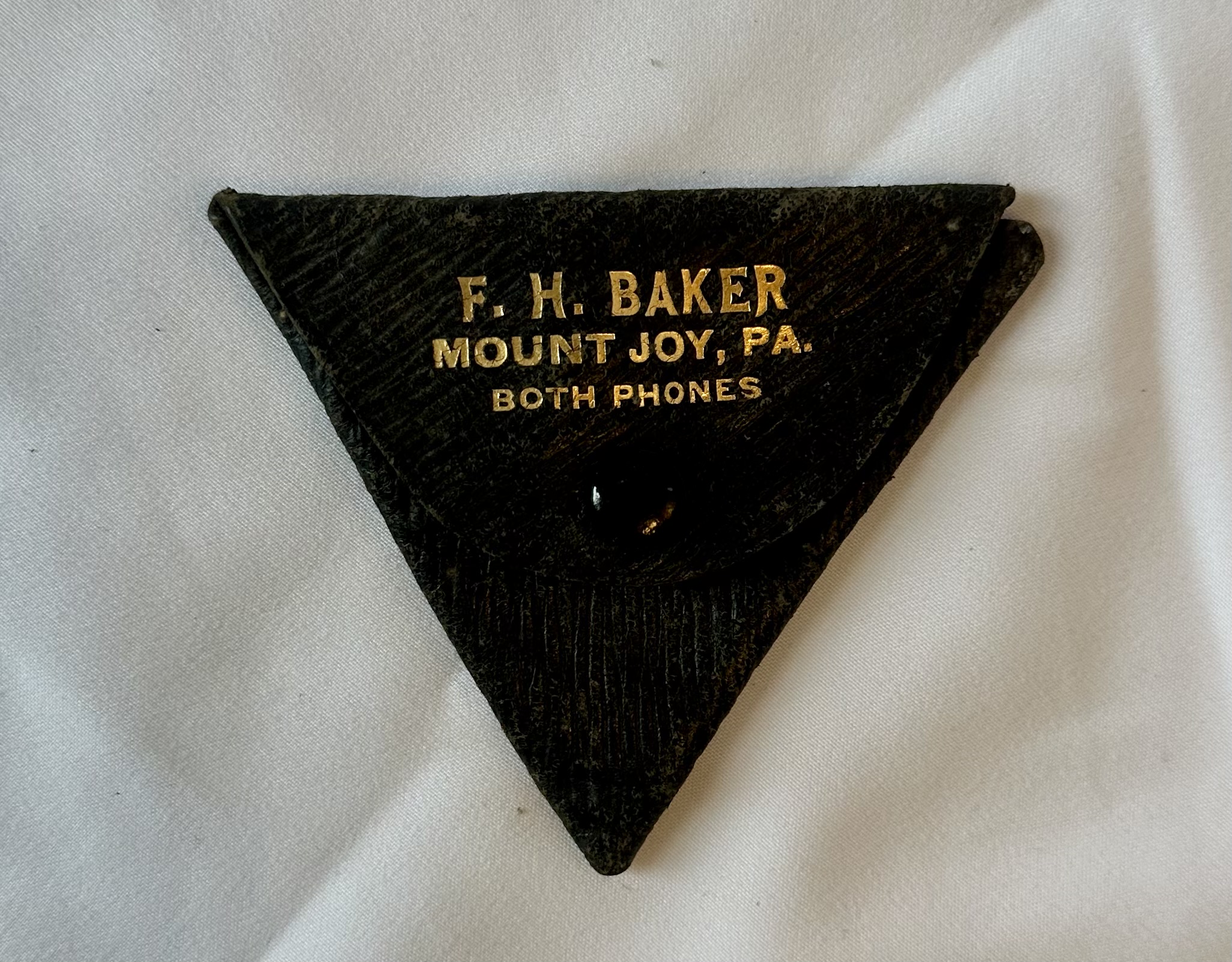 “F. H. Baker triangular coin purse,” MJAHS Online Inventory, accessed November 28, 2025, https://www.mountjoyhistory.com/inventory/items/show/12733.
