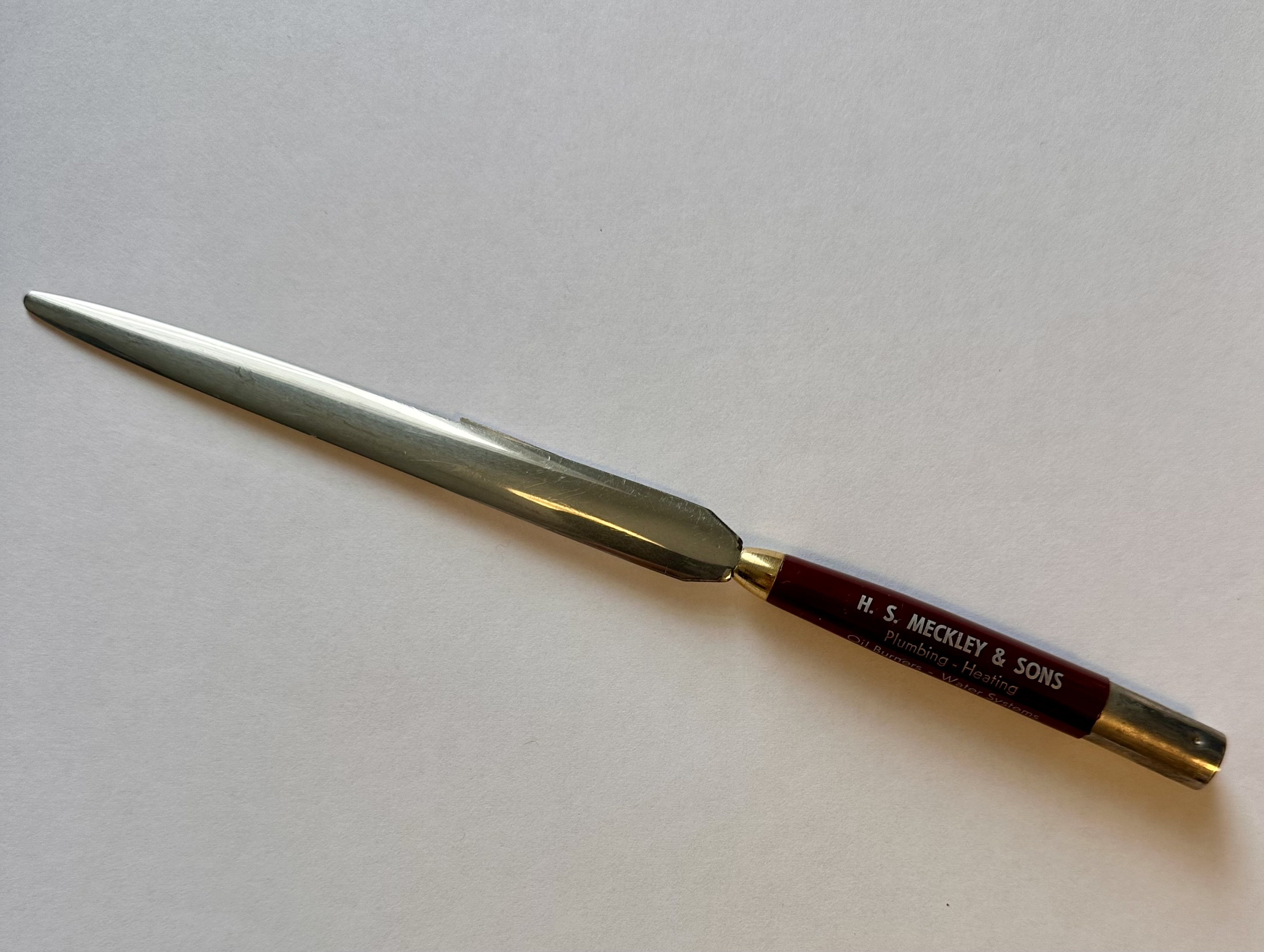 “H. S. Meckley & Sons letter opener,” MJAHS Online Inventory, accessed March 10, 2026, https://www.mountjoyhistory.com/inventory/items/show/13071.