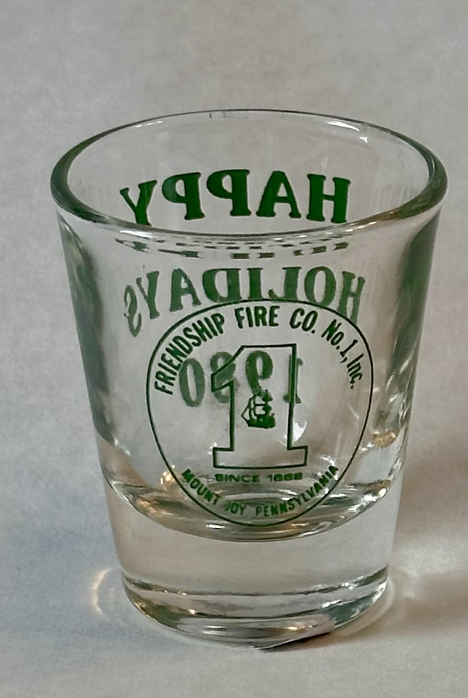 Friendship Fire company #1, Happy Holidays, Shot Glass, 1980