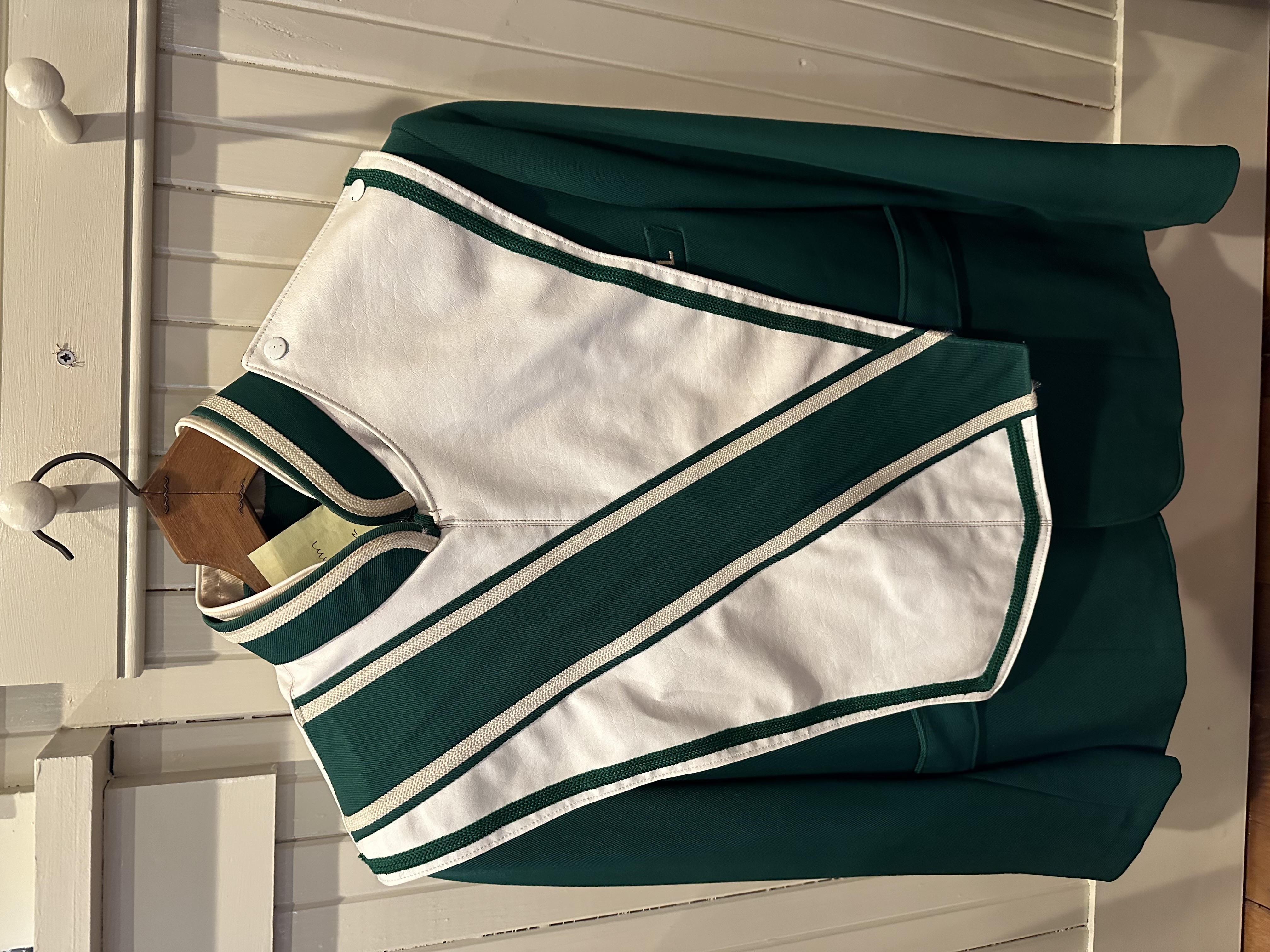 Donegal High School Band Uniform consisting of jacket, pants, overlay, busby hat all in green and white